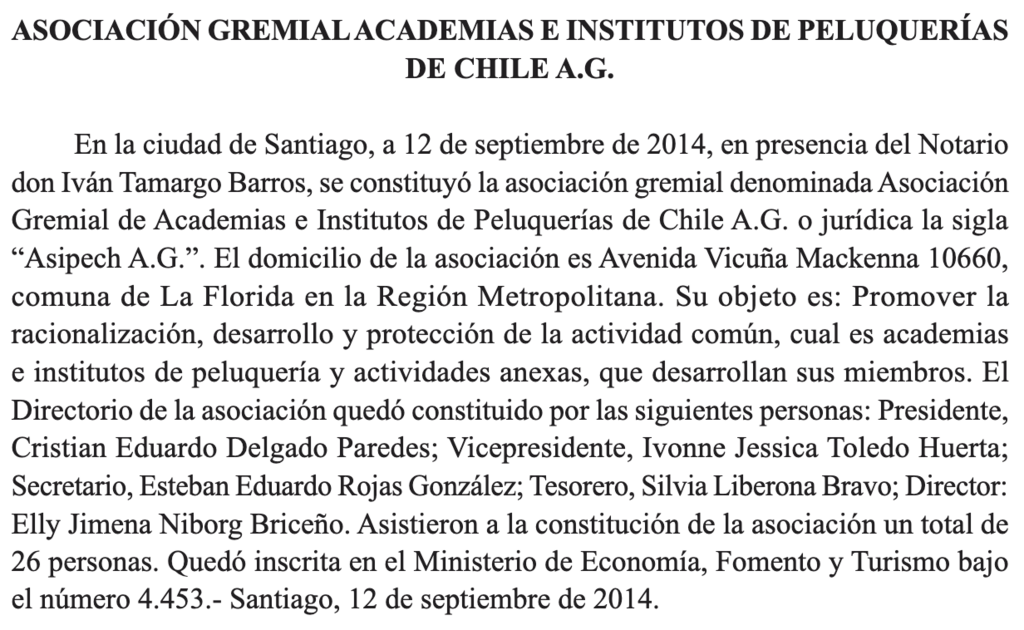La Asociación Gremial de Academias e institutos de Chile, Asipech, tiene como propósito fomentar el desarrollo de la profesión de Estilistas y carreras afines, y cimentar las bases de academias e institutos de peluquerías de Chile con el fin de formar Estilistas preparados en las áreas técnicas y en las habilidades relacionales para lograr el crecimiento de la industria de la cosmética capilar.