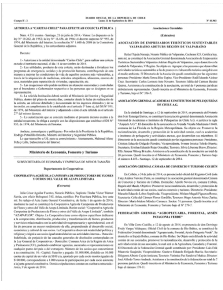 Recorte Publicación Diario Oficial de la Républica de Chile